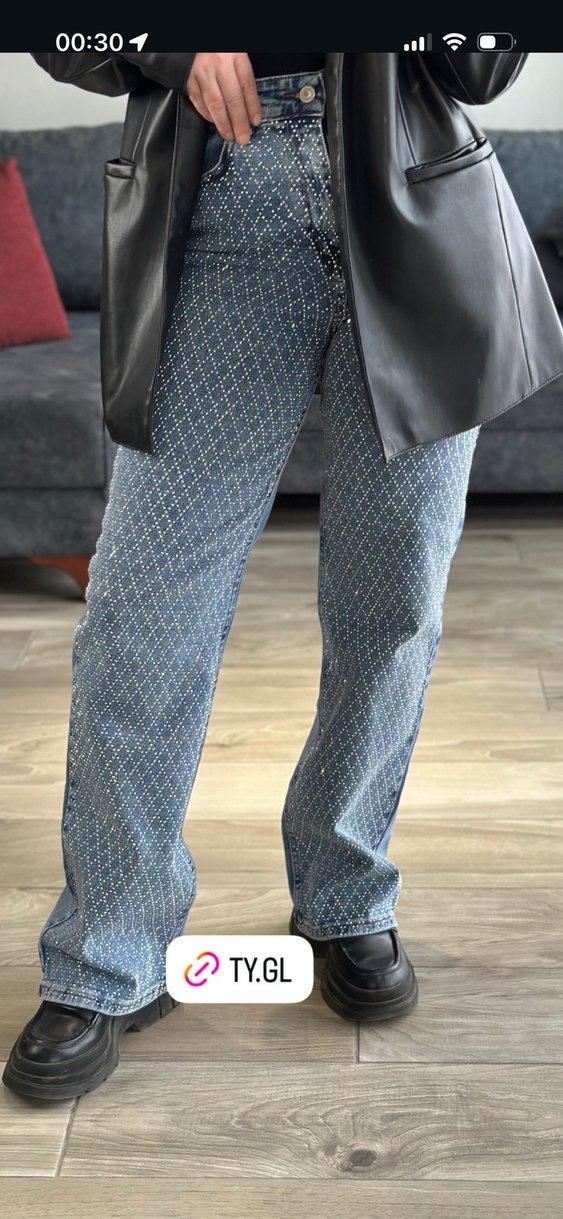 Gri denim kumaştan, desenli ve payetli detaylara sahip, günlük sokak stiline uygun normal boyda ve regular fit kadın jean. 38 bedene uygun