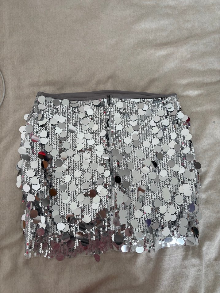 Gri Payetli Etek