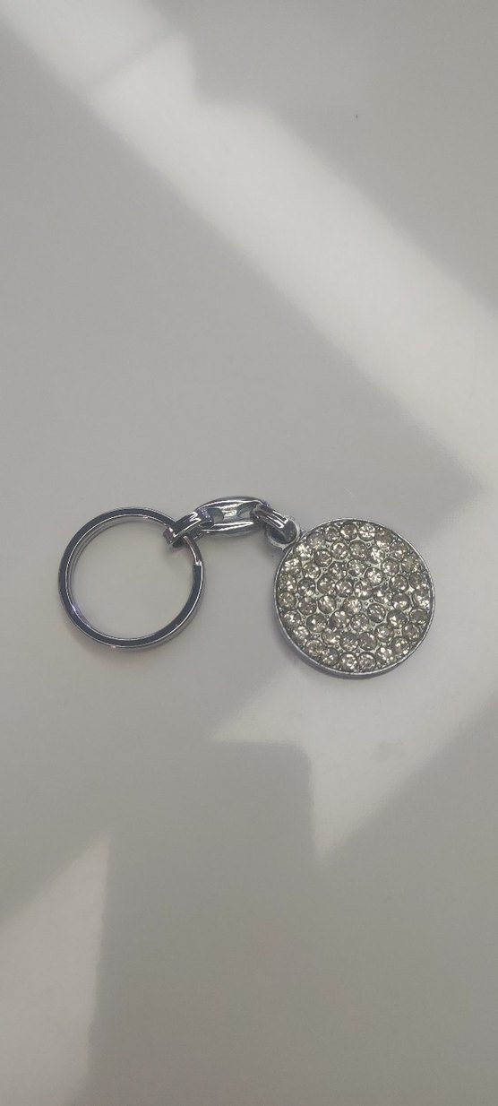 Gri renkte, payetlerle kaplanmış yuvarlak bir uç kısmı olan minimalist kadın anahtarlık. Rock punk tarzıyla sade bir görünüm sunar.