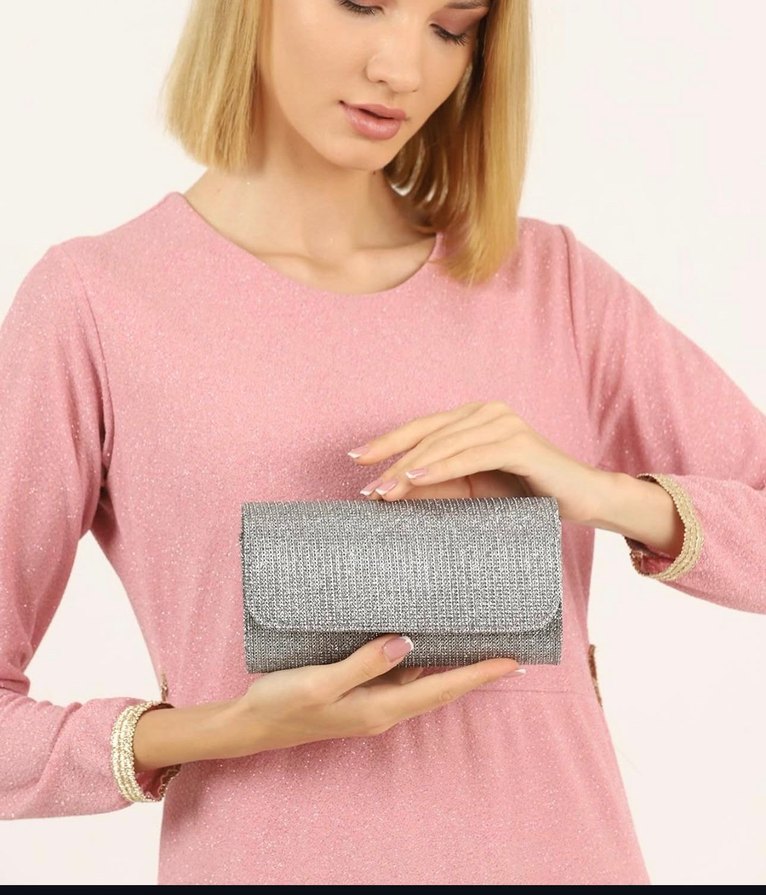 Gri payetli sentetik kumaştan, günlük kullanıma uygun modern ve desen içermeyen kadın portföy çanta. ✨