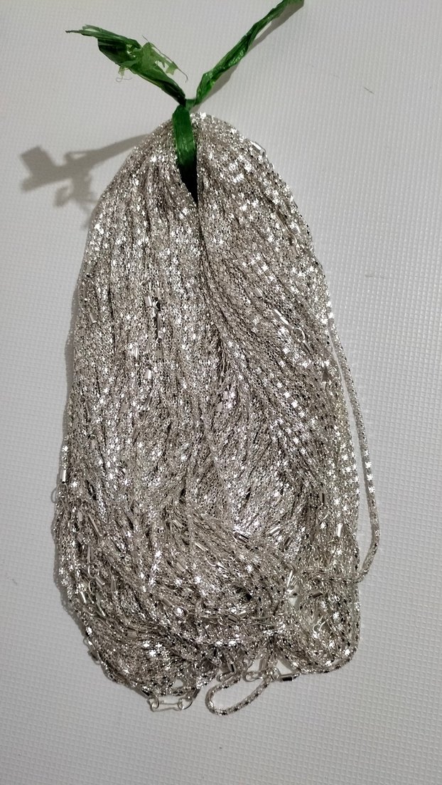 Payetlerle süslenmiş gri kadın zinciri, gösterişli tarzlar için uygun. Parlak ve desensiz tasarıma sahip. ✨uzunlugu 43 santim kararma yapmaz celik toptan zincir paketinde tahmini 111 adet bulunmaktadir fazla da cikabilir