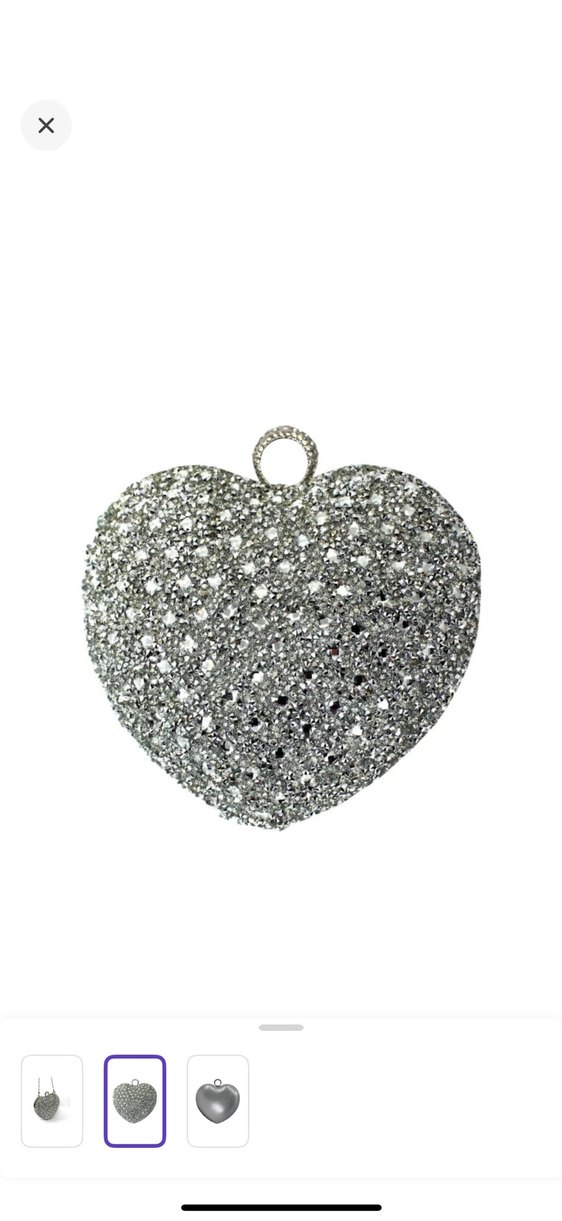 Gri Payetli Kalp Şeklinde Metal Kadın Portföy Çanta