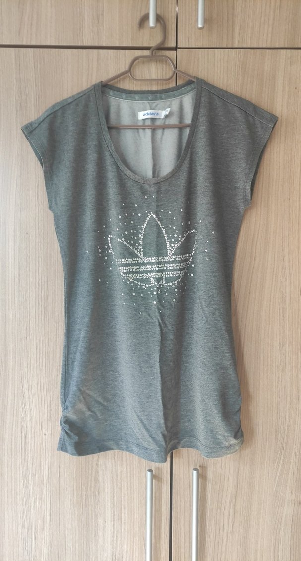 Kolsuz, gri renkli, payetli baskı detaylarıyla günlük kullanıma uygundur.
