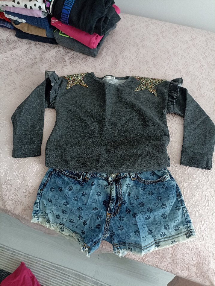 Gri kot kumaştan, bol kesim, uzun kollu ve yuvarlak yakalı kız sweatshirt . Omuzlarda payetli yıldız nakışlarıyla süslenmiştir. ✨