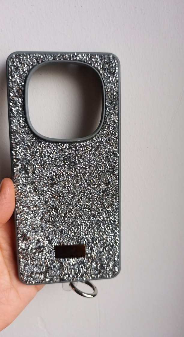 Gri renkte, payetli yüzeye sahip rock punk tarzı telefon kılıfı. Büyük kamera boşluğu ve parlak, dokulu bir yüzey sunar.