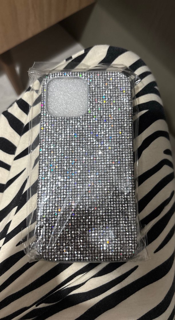 Gri renkte, ışıltılı payetlerle kaplı ve kare desenli street wear tarzı telefon kılıfı. ✨hiç kullanılmadı telefon değişikliği nedeniyle 0