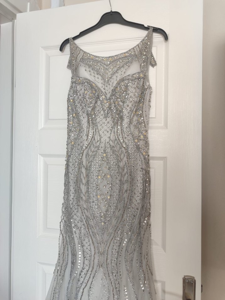 Bu oturan kesim, uzun abiye elbise, detaylı payet desenleri ve askısız yakasıyla düğünler için uygundur.✨ 1 kere kullanıldı