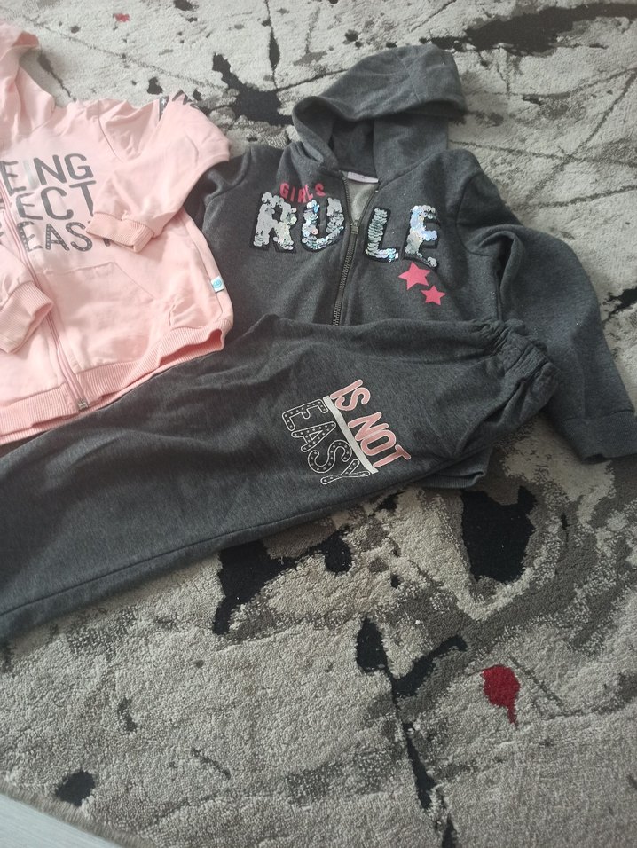 Gri renkli, uzun kollu kapüşonlu üst ve eşofman altından oluşan, payetli baskılı kız çocuk k takımı. Üstte kapüşon ve renkli yıldız detayları bulunur.