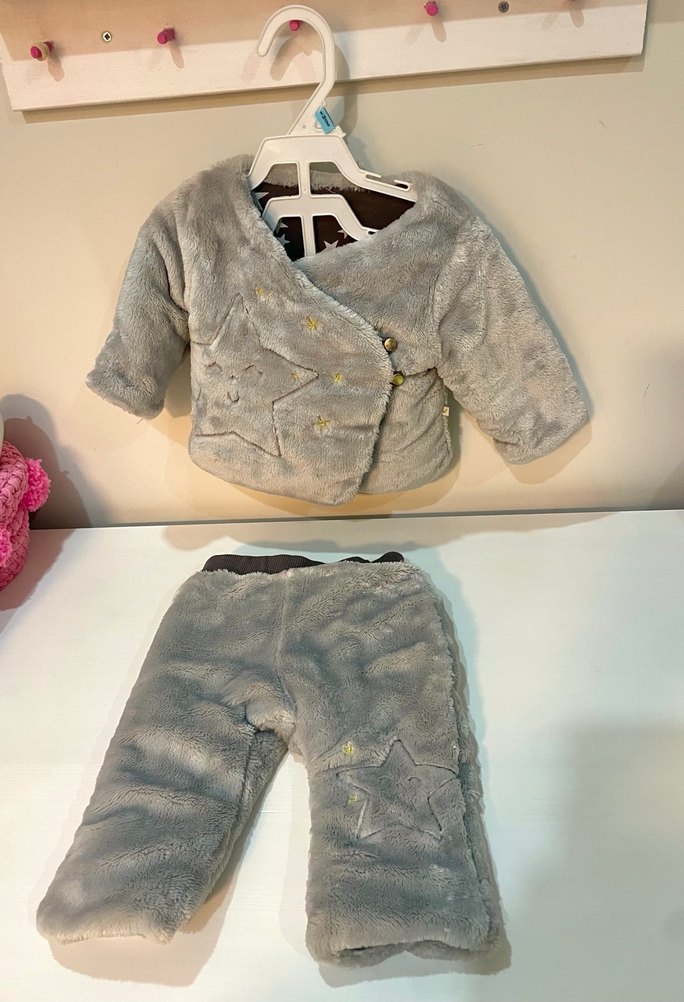 Gri Peluş Bebek Kışlık Takım 3-6 ay çift taraflı giyilebilir