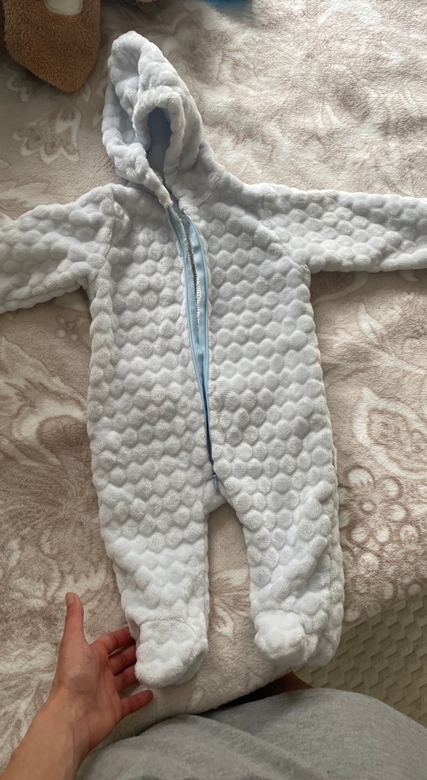 Gri renkli, kapüşonlu bebek tulumu, yumuşak ve sıcak kumaştan, kürklü detaylara sahip, rahat sokak stili ile tasarlanmıştır. ❄️6-9 ay