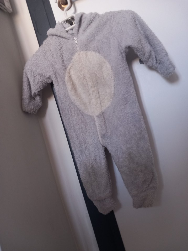 Gri Peluş Bebek Tulumu Kapüşonlu