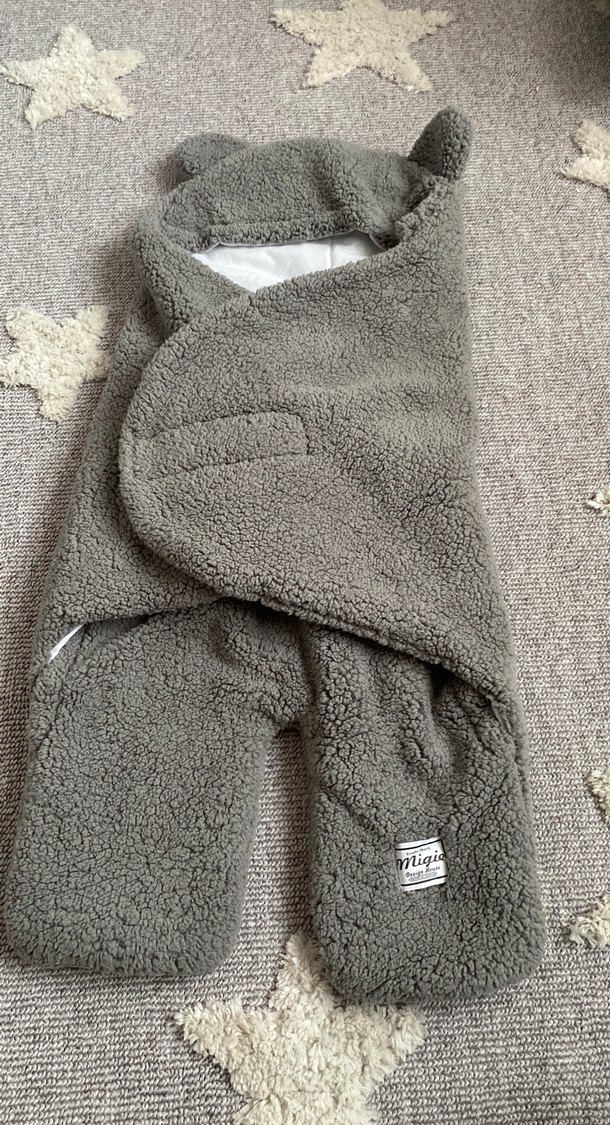 Yumuşak ve sıcak dokulu gri çocuk battaniyesi, kulaklı kapüşon ve rahat sarmal tasarıma sahiptir. 4-7 ay