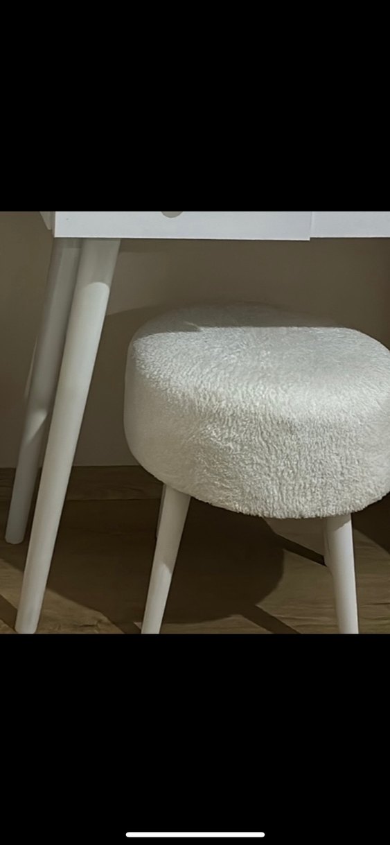 Yumuşak peluş gri oturağa ve sağlam beyaz ayaklara sahip çocuk taburesi, konfor ve dayanıklılık sağlar.
