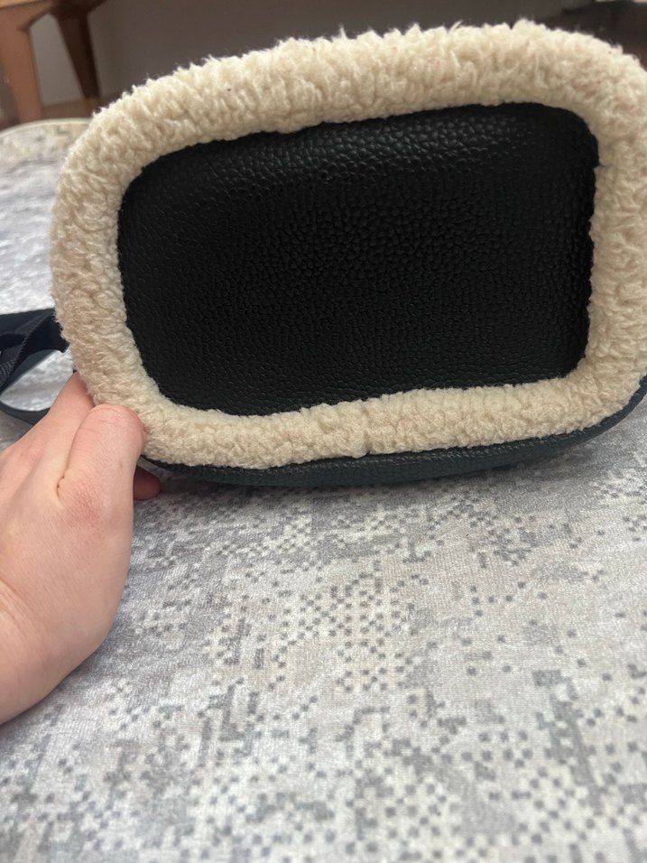 Gri renkte, peluş detaylı ve yumuşak dokulu malzemeden yapılmış biker tarzı kadın çantası, gündelik kullanıma uygun rahat ve şık bir seçenektir. Hiçbir hasari yok yalnızca iki kez kullanıldı