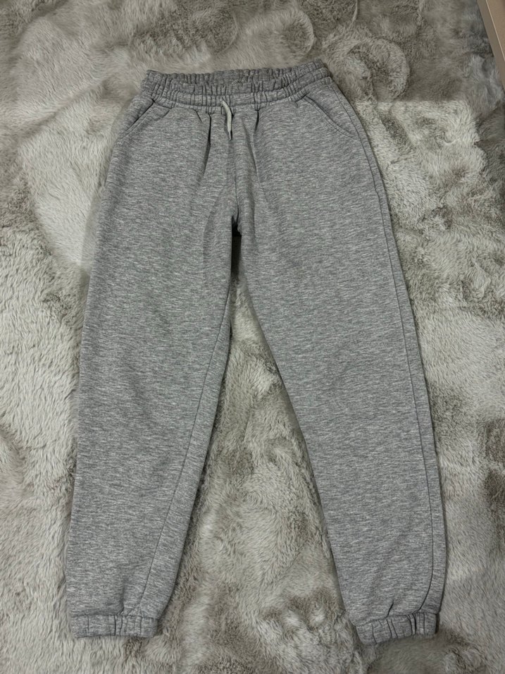 Yumuşak ve sıcak kumaştan, peluş detaylı gri, bol kesim eşofman altı. Rahatlık için elastik bel ve paça manşetlerine sahip.