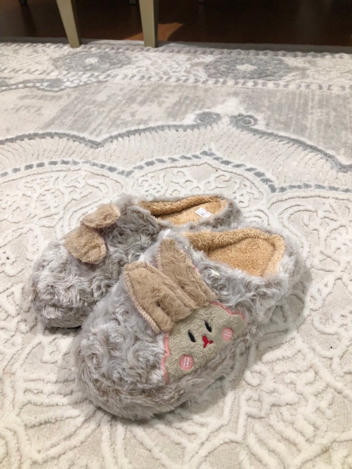 Gri Peluş Detaylı Kadın Ev Terliği