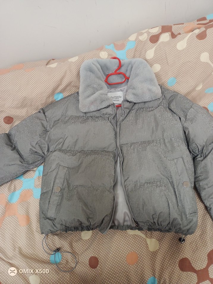 Gri renkli, peluş kumaşlı ve kürk detaylı yakaya sahip kadın kışlık mont. Salaş kesim, uzun kollu ve yakalı, rahat sokak stili için uygundur. ❄️ s m uyumlu