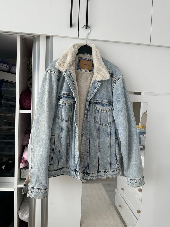 Bu gri kot ceket, peluş detaylı yaka ve rahat kesimiyle günlük kullanıma uygun, konforlu bir sokak stili sunar. Uzun kollu ve midi boydadır.