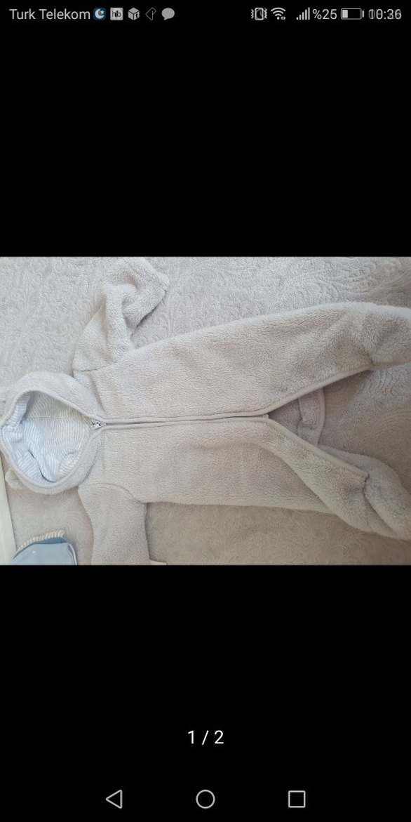 Gri renkli, yumuşak ve sıcak kumaştan yapılmış erkek bebek tulumu. Kürk detaylı, kapüşonlu ve ayakları kapalıdır. Street wear tarzında.