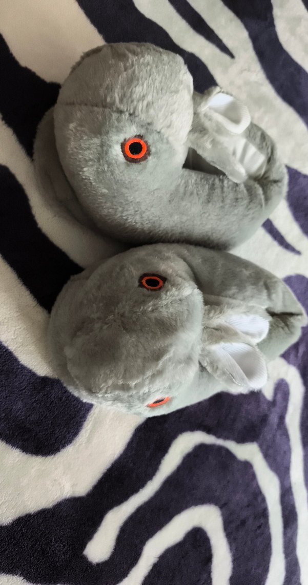 Gri renkli, baskılı desenli ve yumuşak kürk detaylı peluş ev ayakkabısı. Rahat tarza uygun, rahat ve sıcak tutar. Hediye geldi 1 defa kullanıldı 34/38 rahatlıkla kullanılabilir