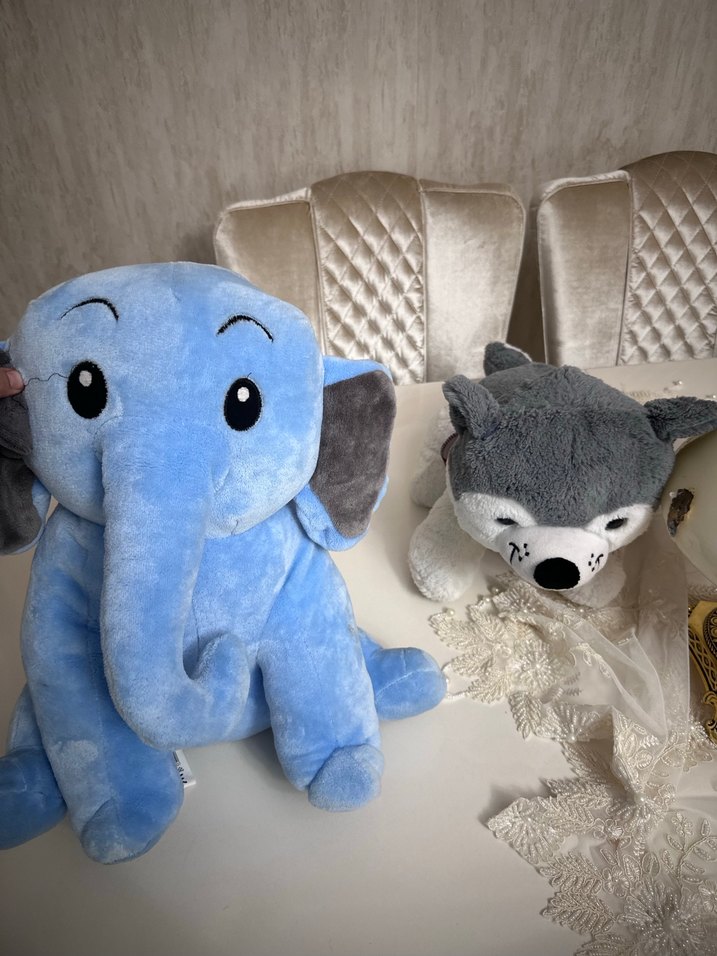 Büyük kulaklı ve sevimli yüz ifadeli, yumuşak gri peluş fil oyuncak. Sarılmak ve oynamak için ideal.