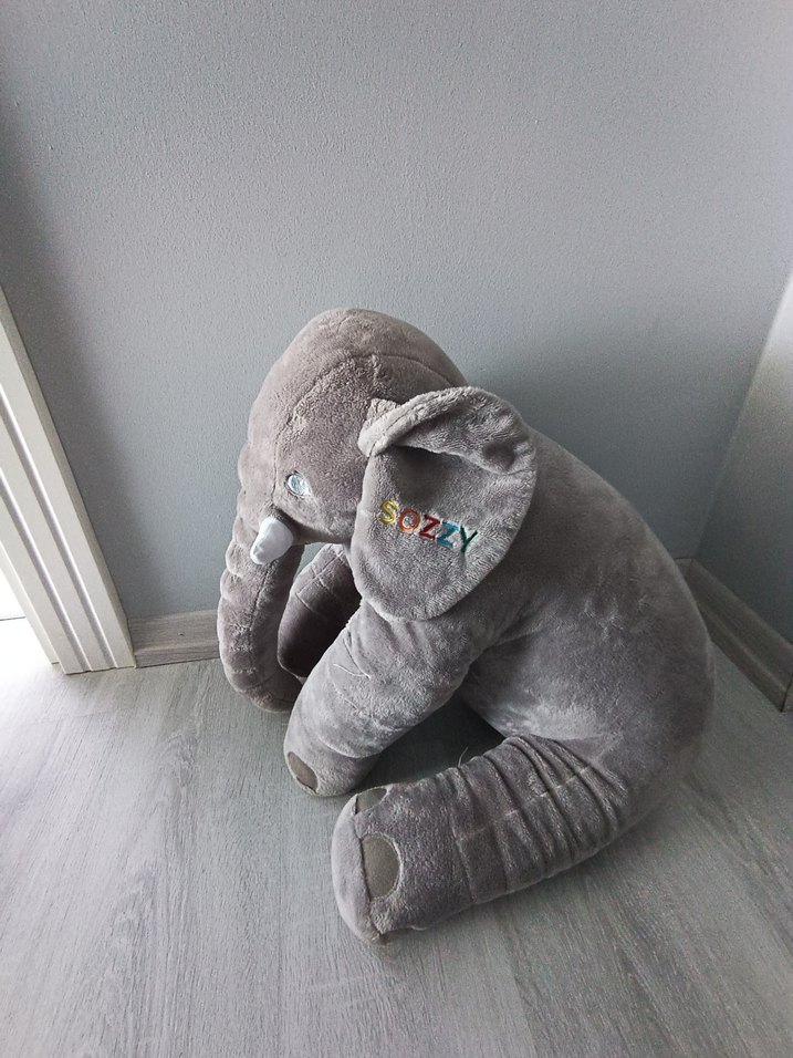 Kulak kısmında işlemeli detaylar bulunan yumuşak gri peluş fil oyuncak. Her yaş için sarılabilir bir arkadaş.