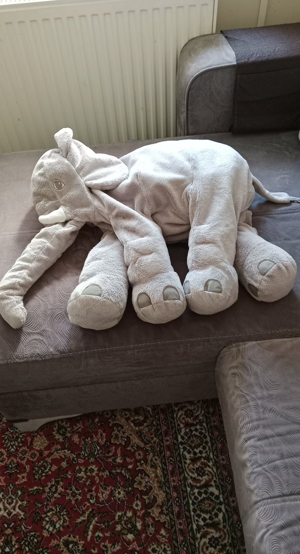 Yumuşak ve büyük gri fil peluş oyuncak, detaylı hortum, kulak ve ayaklara sahip. Sarılmak ve dekor için uygun.