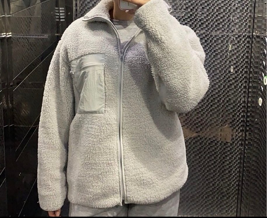 Gri renkte, yüksek yakalı ve uzun kollu, bol kesim kadına özel peluş ceket. Yumuşak ve sıcak kumaş, kürk detaylı, günlük rahat sokak stili için uygundur. Midi boyda, göğüs cep detaylıdır.