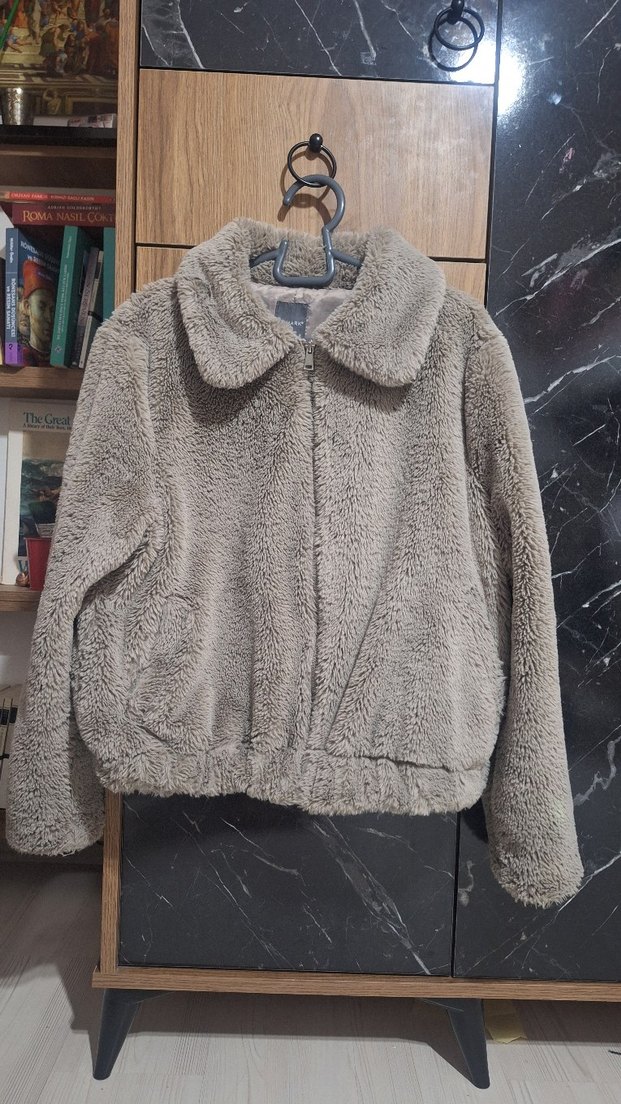 Gri renkli, peluş kumaştan yapılmış, yakalı ve uzun kollu kadın ceket. Rahat kesimi ve normal midi boyuyla gündelik kullanıma uygundur. Çok az kullanıldı hiçbir kusuru yok Almanya'dan alınmıştı. Tertemiz yumus yumus kaliteli ürün.