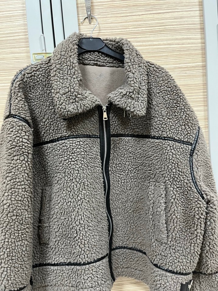 Gri renkte, peluş kumaştan yapılmış ve kürk detaylı, uzun kollu, notched lapel yaka midi boy bol kesim kadın ceket. Rahat ve sokak stiline uygun.