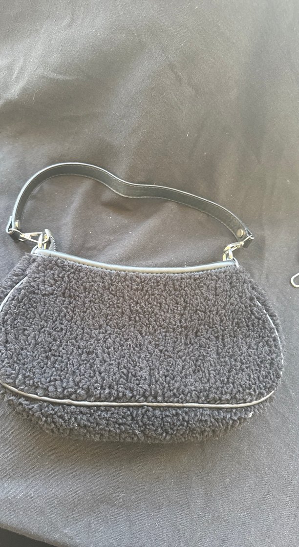 Kadınlar için gri, yumuşak ve sıcak kumaşlı, kürklü detaylara sahip omuz çantası. Tek askısı ile kolay taşınır, sade tasarımlı sokak stiline uygundur.