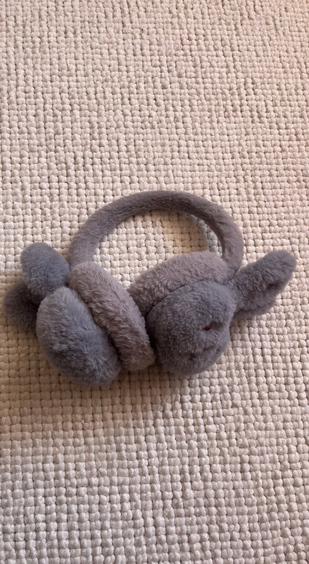 Konfor ve sıcaklık için yumuşak peluş gri kulaklıklar.