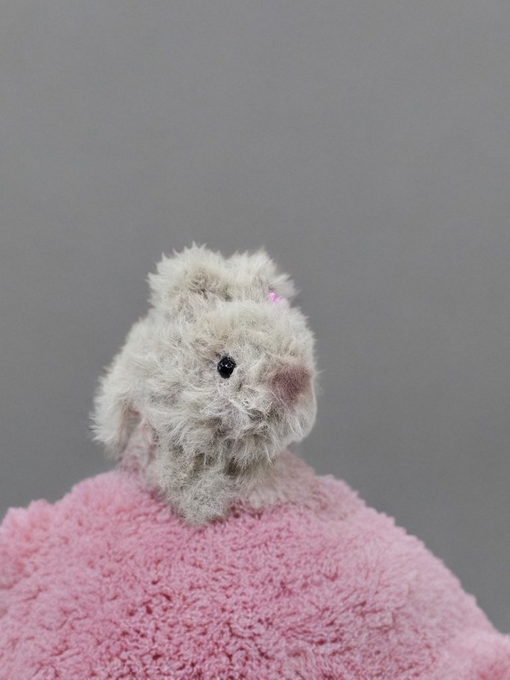 Yumuşak ve kabarık gri peluş tavşan oyuncak, detaylı özelliklere sahip çanta arkadası
