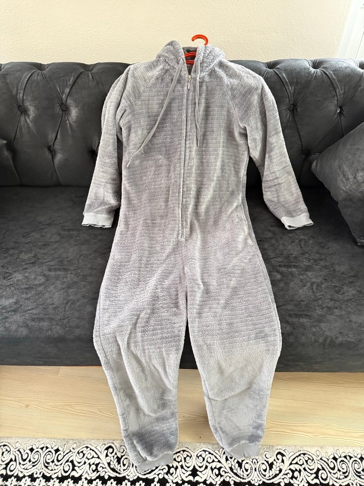 Gri renkte, uzun kollu, bisiklet yaka, triko dokulu, tam fermuarlı, rahat kesim tulum. Yumuşak ve sıcak kumaştan üretilmiştir. S beden diyor ama M ye uygun. Sıcacık tutuyo Kapüşonlu