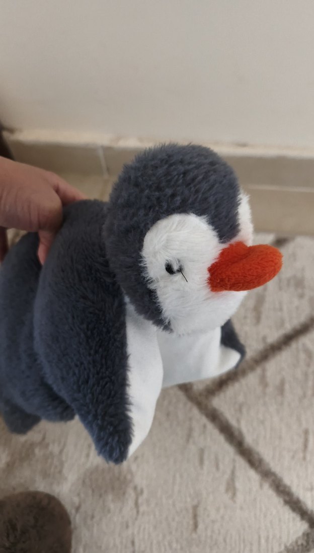 Yumuşak gri penguen peluş oyuncak, beyaz gövde ve turuncu gagasıyla sarılmak için ideal .