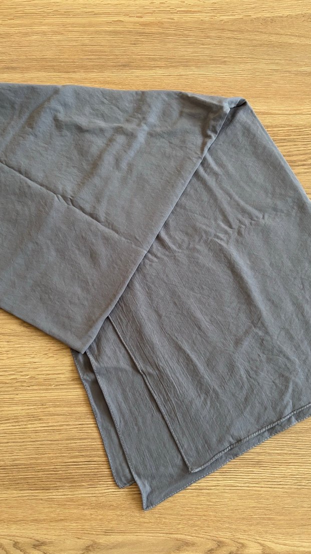 Yumuşak penye kumaştan yapılmış, gri renkte ve drapeli kadın şalı, sade ve rahat bir görünüm sunar. Bohem tarzına uygundur.