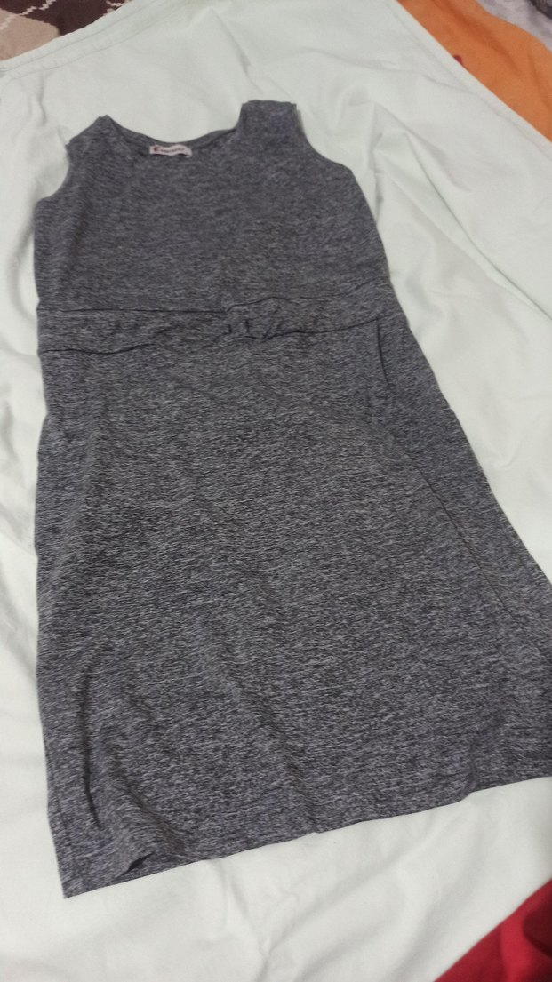Gri penye midi elbise