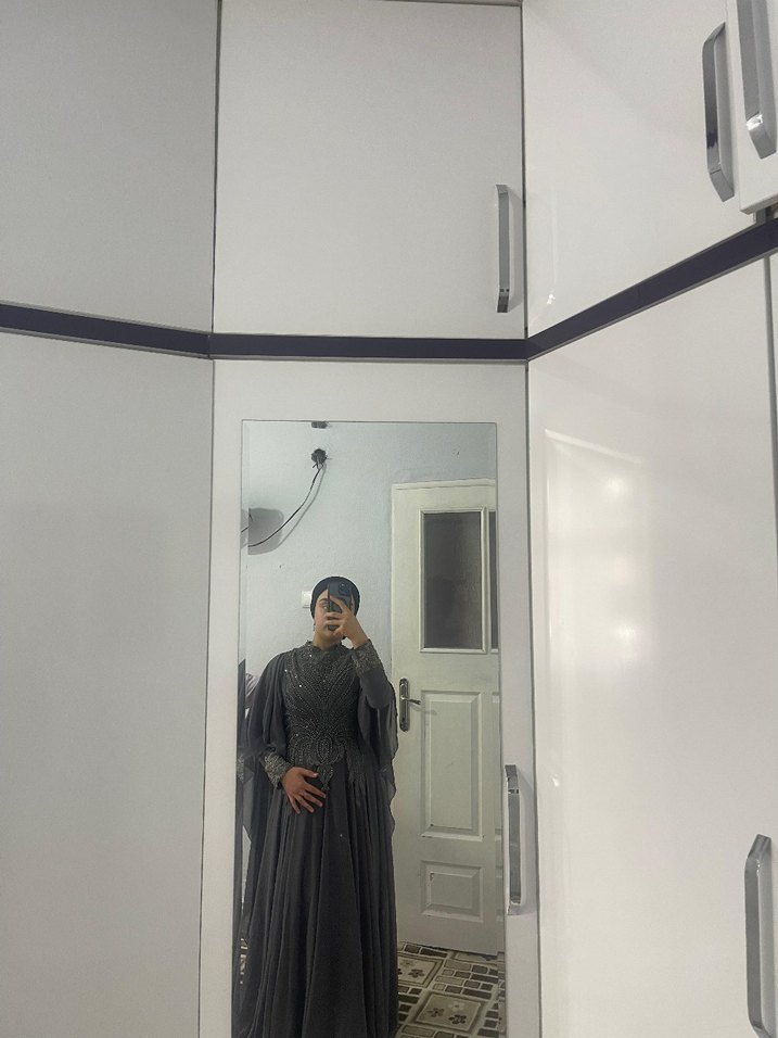 Gri perelinli uzun kollu abiye