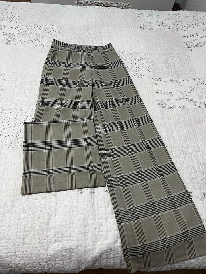 Gri renkli, pileli detaylara sahip uzun kesim kumaş pantolon. Rahat kesimiyle ofis ve gündelik sokak stiline uyum sağlar.