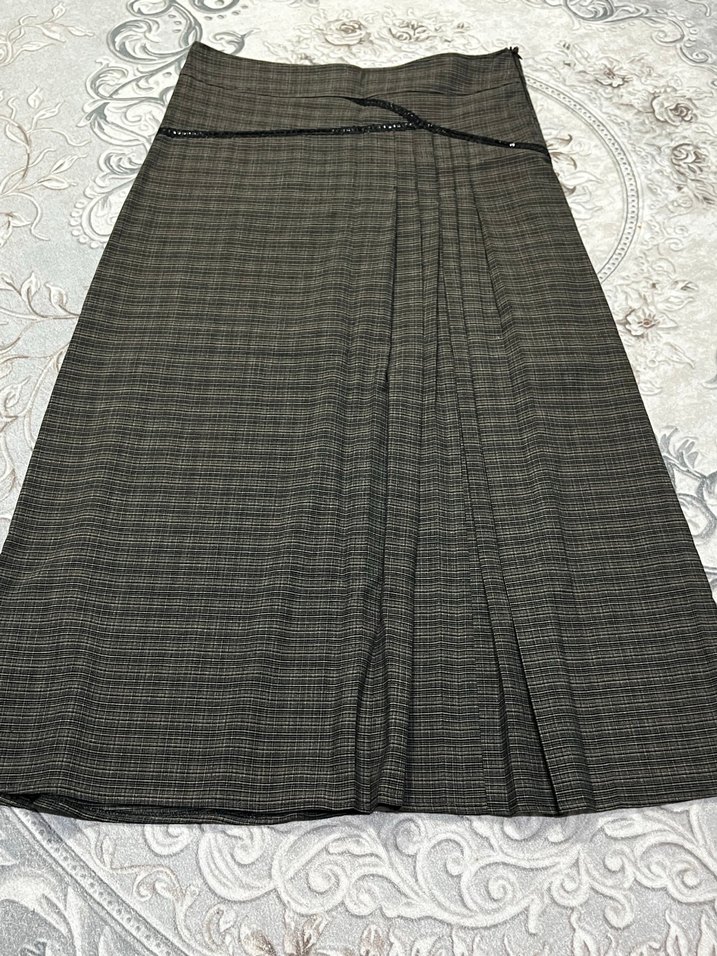 Gri renkte, sentetik kumaştan üretilmiş, pile detaylı ve regular fit uzun etek. Ofis ortamına uygun, klasik iş tarzına hitap eder.