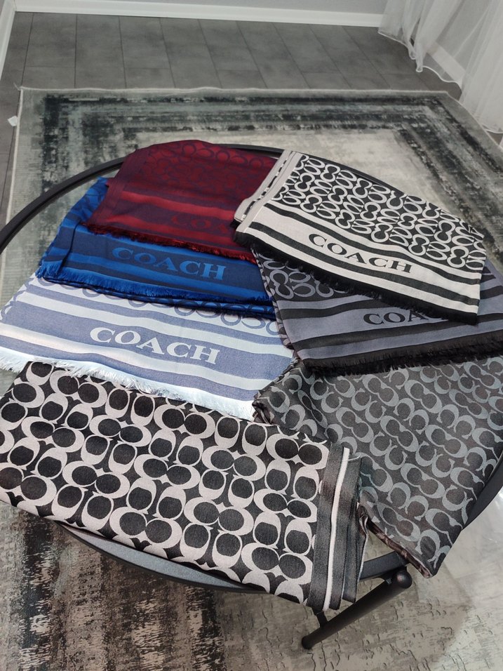 Gri renkli kadın wrap, pileli detaylara ve Coach logosuna sahiptir. Yumuşak tekstil kumaştan yapılmış olup rahat ve çağdaş bir tarz sunar.