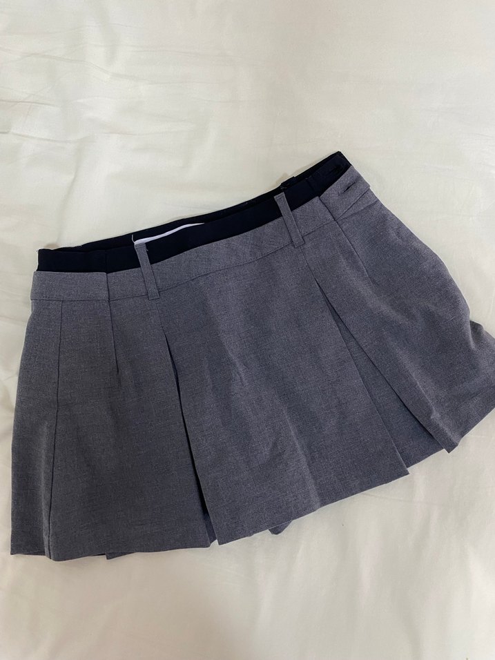 Gri renkte,ç, pileli mini etek. Minimalist ve desensiz tasarımı günlük sokak stiline uygundur. Birkaç kez giyildi kusuru yok