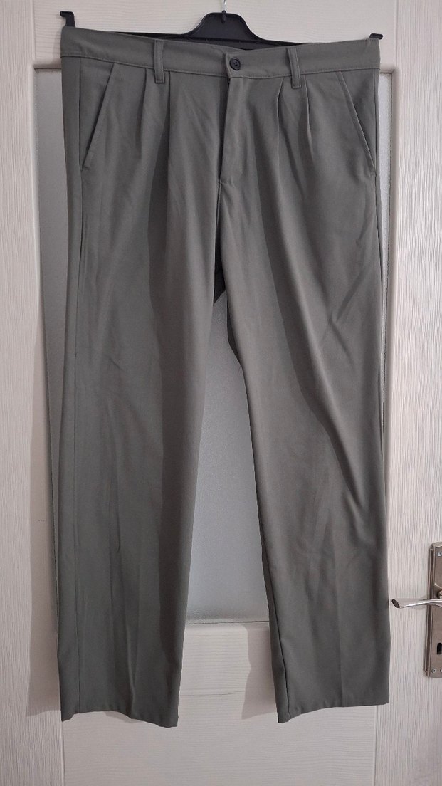 Gri renkte, pilili ve normal midi boyda erkek kumaş pantolon. Sentetik kumaştan, ofis kullanımı için uygun, rahat kesim. BEDEN:XL