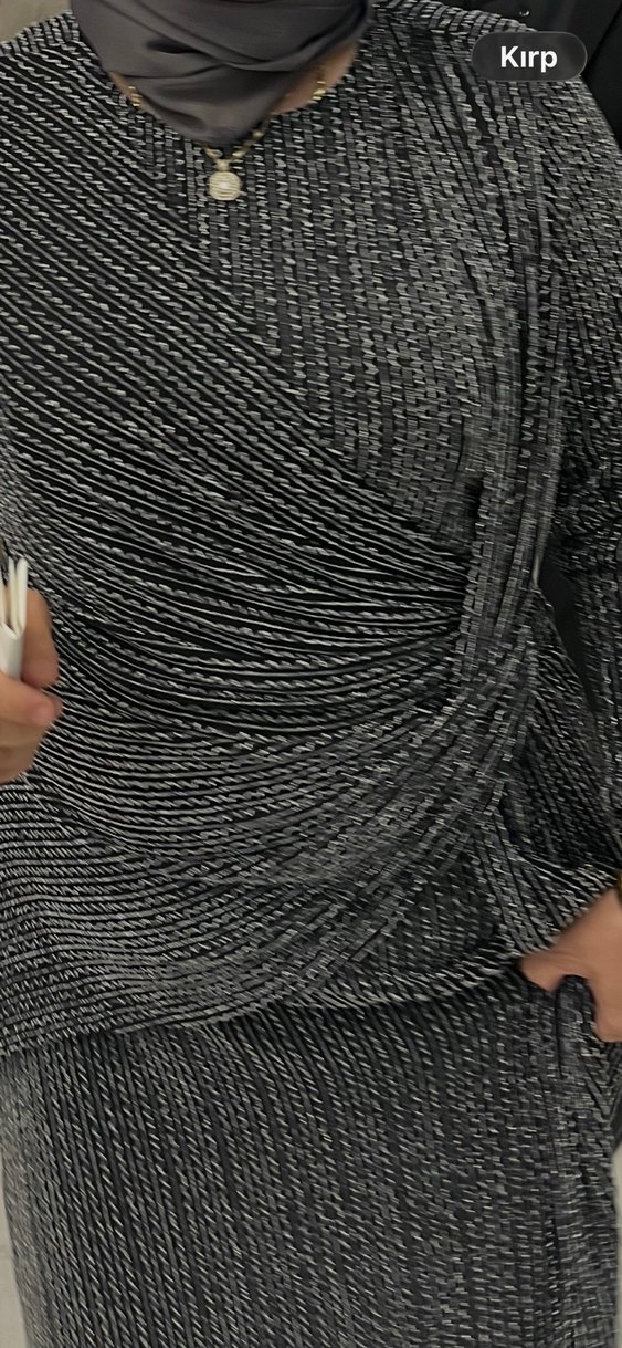 Gri renkli, pilili desenli, uzun kollu kadın abiye elbise Beş bine aldım samsun imaj mağazadan bir defa giydim 42 bedenim ama bu 44 beden Esnek ve simli likralı gibi çok şık tasarım Kaçırmayın özel günlerin en sade şıkı siz olun