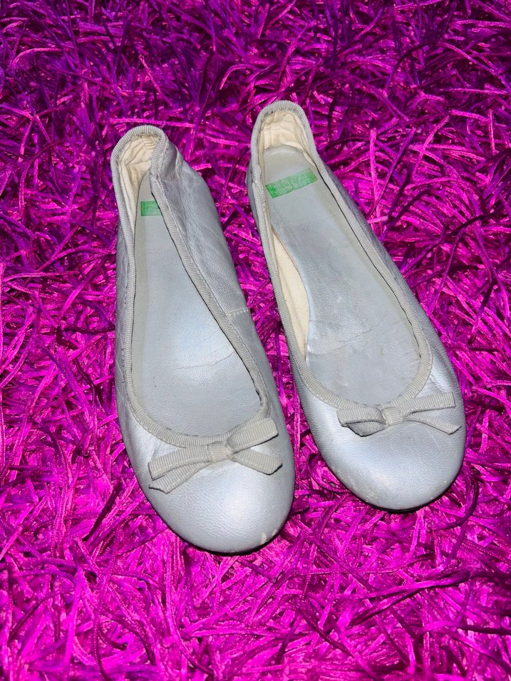 Gri renkte, pilili ve küçük fiyonk detaylı kadın babetler, kauçuk malzemeden yapılmıştır ve düğün için uygundur.