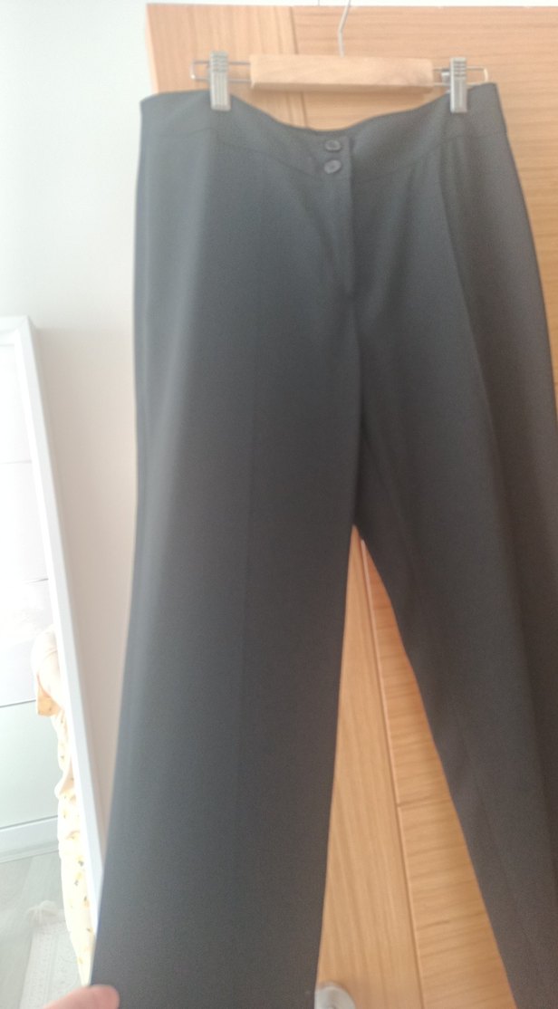 Gri renk, pilili ve midi boy kadın kumaş pantolon. Yumuşak dokulu kumaştan yapılmış, ofis için uygun, normcore tarzda.