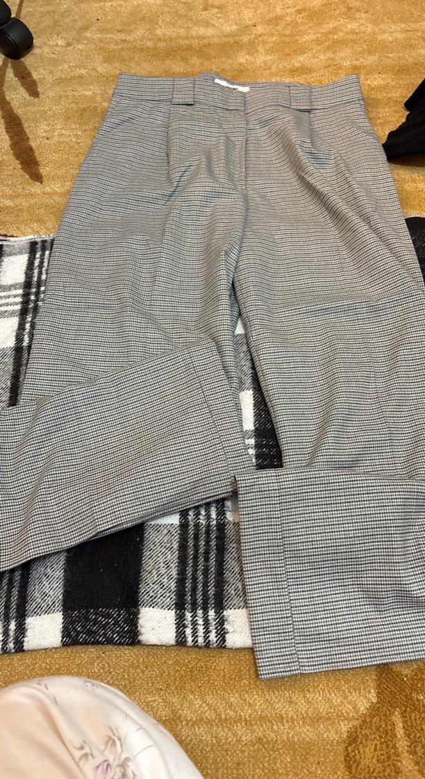 Gri pilili kadın kumaş pantolon, normal boy ve regular fit. Ofis ve günlük sokak stiline uygun, sentetik kumaştan yapılmıştır. Hiç giymedim sadece etiketi yok