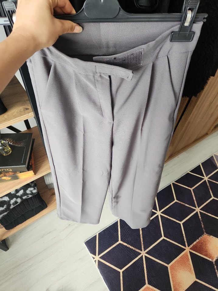 Gri renk, normal boy, pilili kadın kumaş pantolon. Sentetik kumaştan, iş ortamına uygun rahat kesim.