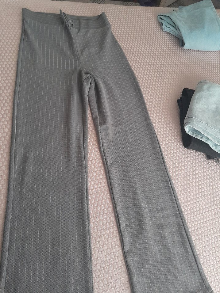 Gri renkte, pilili ve midi boyda kadın kumaş pantolon bikac kez giyildi