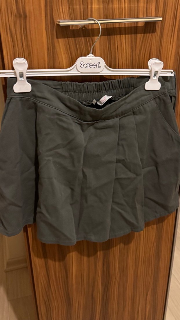 Gri renkte, sentetik kumaştan üretilmiş, pilili ve bol kesim kadın mini etek. Rahat ve şık, dış mekan kullanımı için uygundur. Dar kalıptır s ve m beden için uygundur markası addax degil